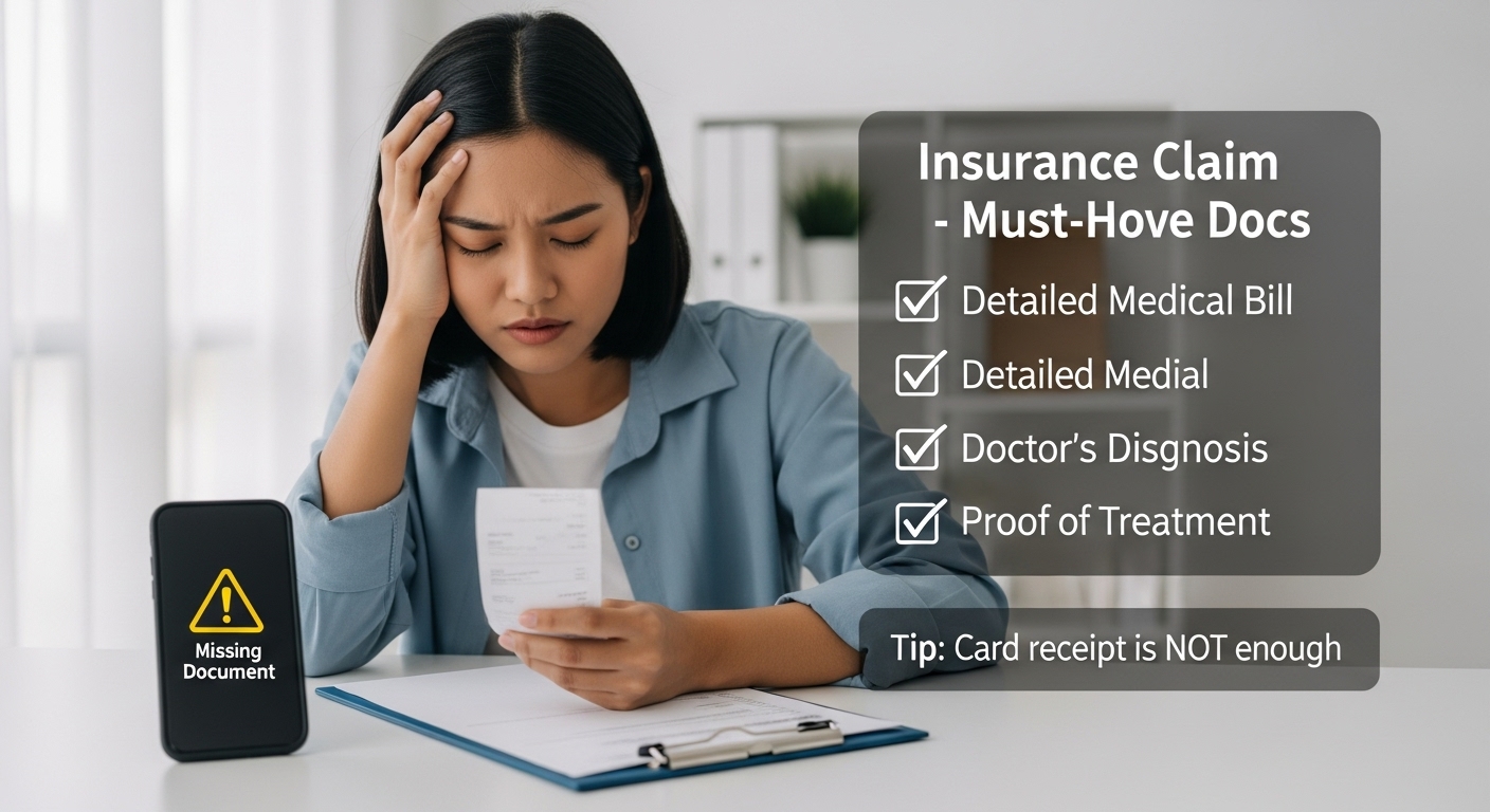 **'진료비 계산서·영수증'**입니다. 많은 분이 카드 결제 후 받는 작은 전표(카드 영수증)를 제출하시는데, 이는 보험 행정상 아무런 가치가 없습니다. 카드 전표에는 내가 낸 총금액만 적혀 있을 뿐, 급여 항목인지 비급여 항목인지 구분이 안 되기 때문입니다. 반드시 병원 직인이 찍힌 정식 '진료비 계산서'를 받으셔야 합니다. 여기에는 본인부담금과 공단부담금이 상세히 나누어져 있어 보험사가 실손 보상 한도를 계산할 수 있게 해줍니다.